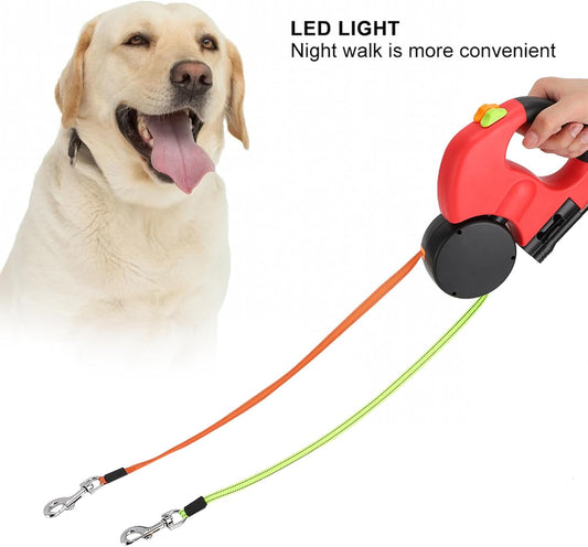 Dual Retractable Dog Leash, Automatic Hand Holding Pet Leash, Adjustable Dog Leash with LED Light for Dogs Walking Pets (Scarlet)